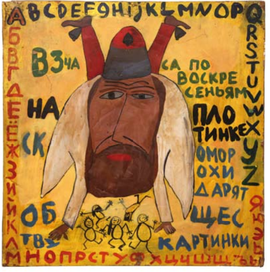 B.U. Kashkin's circle created outsider art in various media, but especially painting, distributing it to the public during their Punk-Skomorokh perfromances. B.U. Kashkin encouraged amateur artists to experiment with public art.