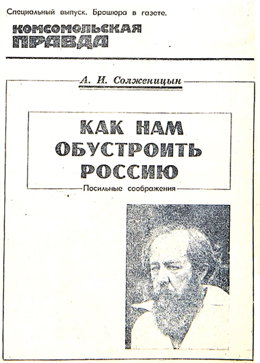 Aleksandr Solzhenitsyn, “Kak nam obustroit’ Rossiiu,” Komsomol’skaia pravda, September 1990.