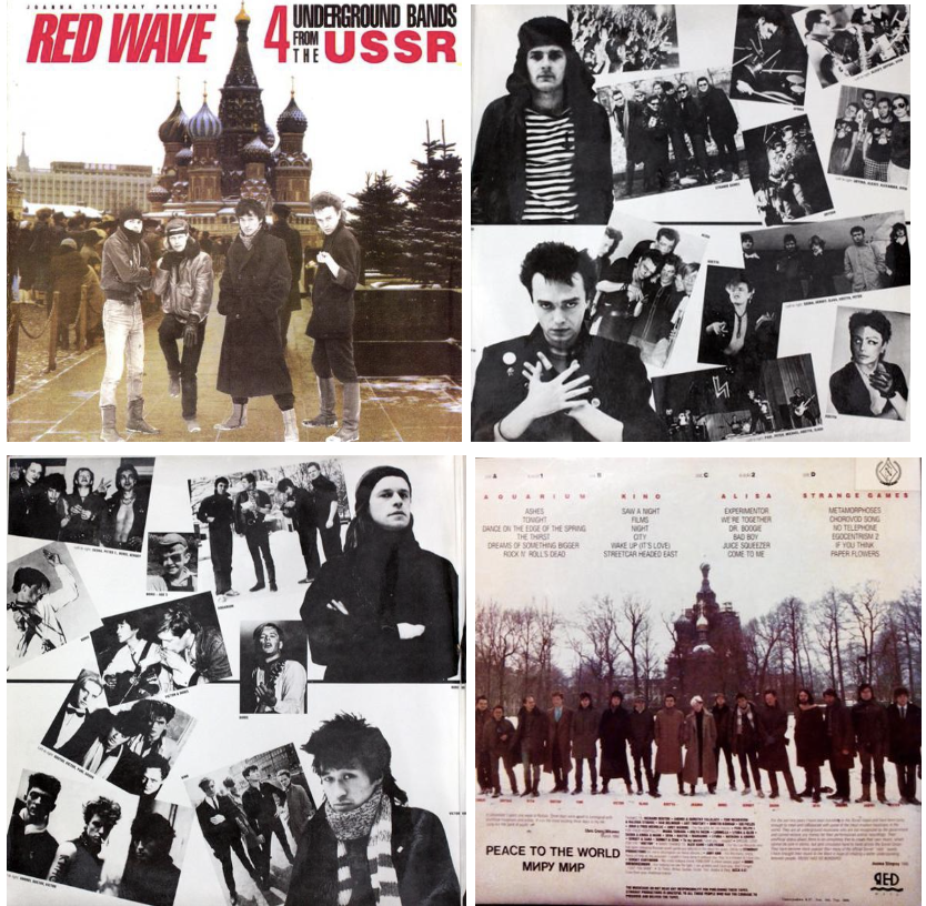 Red Wave: 4 Underground Bands from the USSR is a split double album, originally recorded on vinyl, which was the first release of Russian rock music in the west. The album, totaling 15,000 copies, was released on June 27, 1986 by the Australian indie rock label Big Time Records, and features compositions from four Leningrad-based rock bands: Aquarium, Kino, Alisa, and Strange Games (Strannye Igry), which, while being presented as “underground” by the record itself, were all members of the officially-sanctioned Leningrad Rock Club and enjoyed a fair degree of popularity among Soviet rock music fans in Leningrad and Moscow. The effort to release Red Wave was singlehandedly spearheaded by Joanna Stingray (born Joanna Fields), an aspiring American rock singer, who in 1984 (at the very dawn of Gorbachev’s Perestroika) traveled to Leningrad, where she was introduced to the flourishing amateur rock music community. Having formed enduring friendships with some of Russian rock’s most recognizable personalities (Boris Grebenshchikov, Viktor Tsoi, Konstantin Kinchev, Sergei Kuryokhin), Stingray fashioned herself as both a patron and ambassador of Soviet rock music. For nearly a decade she shuttled between the US and the USSR, smuggling musical instruments and recording equipment to the Leningrad rock community, in this way ensuring and sustaining its artistic endeavors. Stingray envisioned the album as a cultural weapon to end the lingering Cold War tensions that existed between the US and the USSR, that would catapult Soviet rock musicians to international fame. The back-cover image of the record contains the Soviet anti-war slogan “Peace to the World” (Miru mir) which was gaining renewed traction among the westward-looking Soviet youth, weary from inhabiting the confines of the Iron Curtain. The release of the album made headlines in international popular music publications, and as a result of this, Gorbachev himself has been quoted to wonder, “Why is it that such albums come out in America, but not here?” This question resulted in an order to the USSR minister of culture to work with amateur popular musicians. Red Wave was also used as a diplomatic tool for US immigration services, when Stingray sent a copy to Ronald Reagan in an effort to bring Leningrad musicians on tour to the United States, as well as iron out the bureaucratic logistics of her impending marriage to Kino guitarist Yuri Kasparyan. Red Wave, therefore, is emblematic of the often contradictory, yet nevertheless culture-shifting sociopolitical mechanisms that emerged as the result of Gorbachev’s reforms, which sought to promote domestic cultural production while engaging in international discourse. Spawned as a clandestine collaborative project on the peripheries of music production in both the US and the USSR, the album managed to tear a small, yet noteworthy hole in the seemingly impenetrable political impasse between the two countries, serving as a harbinger of the monumental changes looming on the horizon.