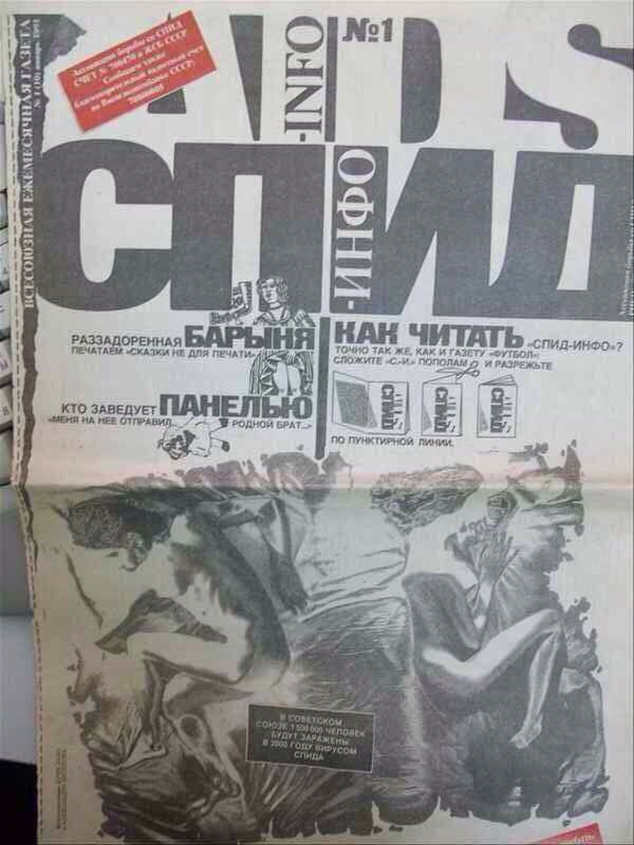 Aidsinfo, quickly renamed Speedinfo, drew its second title from a play on words: the homophone between the Western calque “speed” and the Russian abbreviation for “AIDS,” “SPID.” Speedinfo was the first publication to inform the Russian public about sexuality and sexually transmitted diseases. The first issue, from 1991, under the editorship of Andrei Mann, is a quaint artifact still marketing itself as an “All-Soviet Monthly.” Its cover includes instructions for cutting the pages into a functional newspaper and directly states the prevention of STIs as a significant goal. It is difficult to imagine that, over the next three decades, this educational publication would develop into Russia’s most popular sex tabloid, publishing erotic jokes, unlikely stories, sex advice columns, and letters-to-the-editor style fantasy narratives from readers.