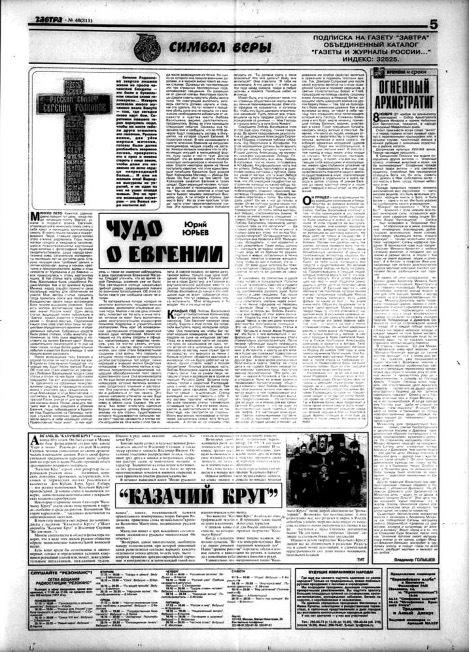 Iurii Iur'ev, “Chudo o Evgenii,” Zavtra, No. 46 (311), November 1999: 5.