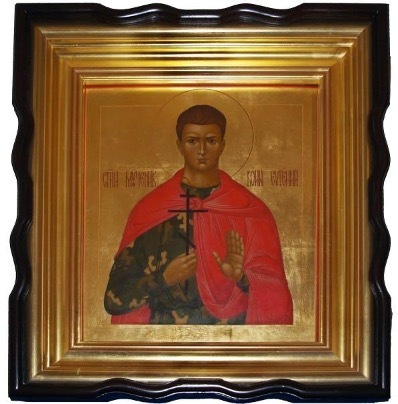 Iur’ev was not the only one to report miracles. The next year, Father Vadim Shkliarenko from Dnepropetrovsk reported reading a brochure about Rodionov’s story and then seeing him in a vision that night “in camouflage, just like on the brochure, but with a red cape cast over his shoulder as martyrs are rendered on icons.” The next day, Father Shkliarenko saw that “the front of the brochure with the portrait of the neomartyr for Christ, the warrior Evgenii was sprinkled with drops of myrrh that sparkled in the morning sun.” The brochure miracle helped feed an intensive campaign to canonize Rodionov in the coming years and Father Shkliarenko’s vision served as the basis for many icons painted of the “Martyr Warrior Evgenii” throughout the Orthodox world.