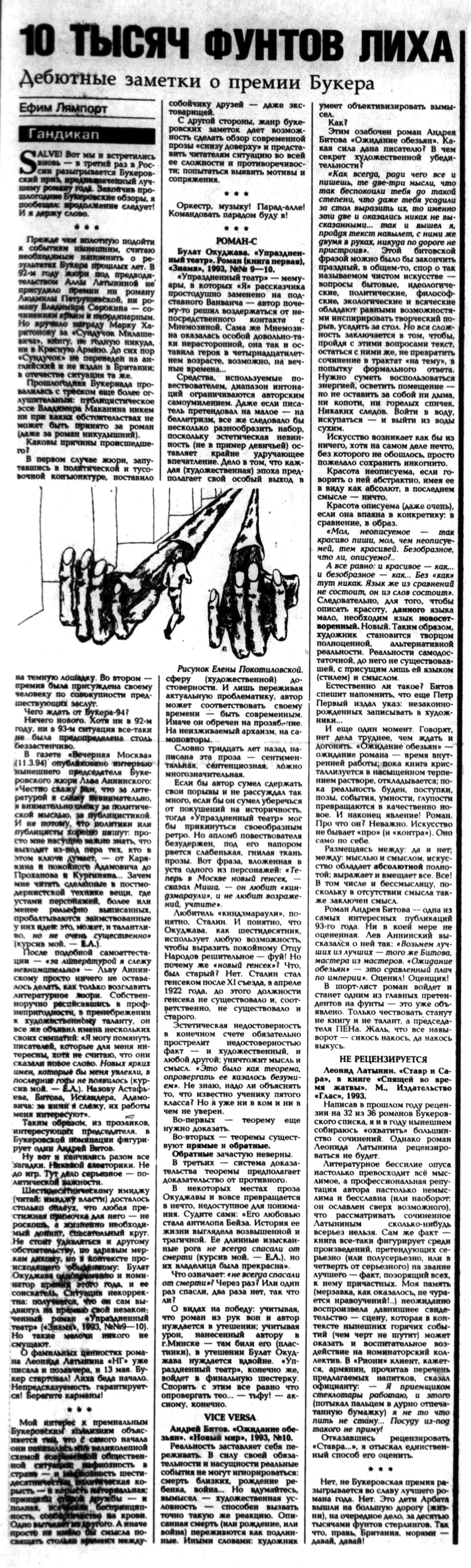 Efim Liamport Booker Series - "10 tysiach funtov likha," 5-part series, Nezavisimaia gazeta, June 1994.