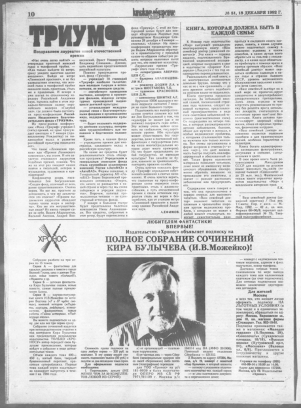 A. Efimov, "Triumf. Pozdravliaem laureatov novoi otechestvennoi premii," Knizhnoe obozrenie, 18 Dec 1992: 10.